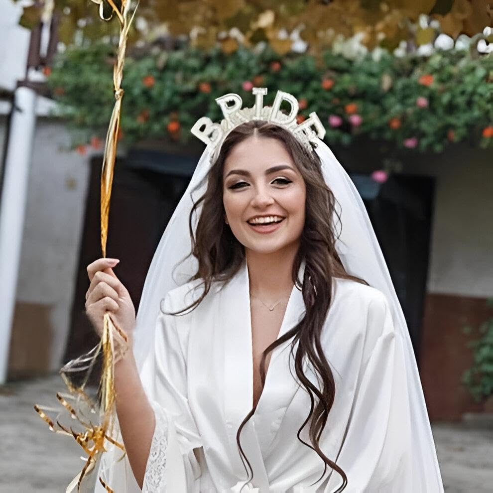 - تفاصيل رائعة من اللؤلؤ الصناعي وكلمة "BRIDE" – أضف بريقًا في احتفالك بالزفاف مع لؤلؤ صناعي فاخر يكوّن كلمة BRIDE على شريط رأس قطيفة مبطن.