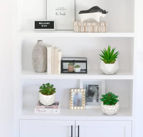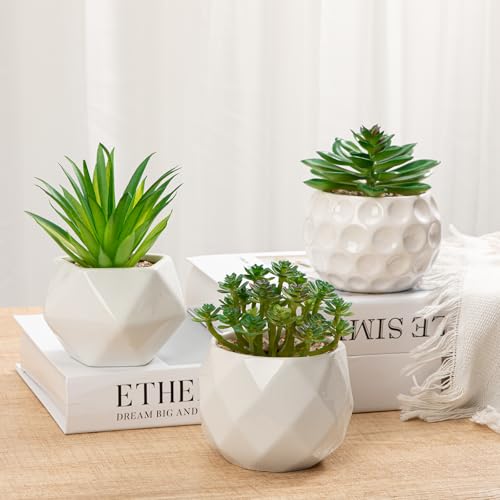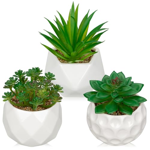 Briful - نباتات صناعية عصارية في أصيص سيراميك أبيض، نبتة عصارية صغيرة لسطح الطاولة وديكور للحمام وغرفة النوم وديكور المنزل من بريفول، طقم مكون من 3