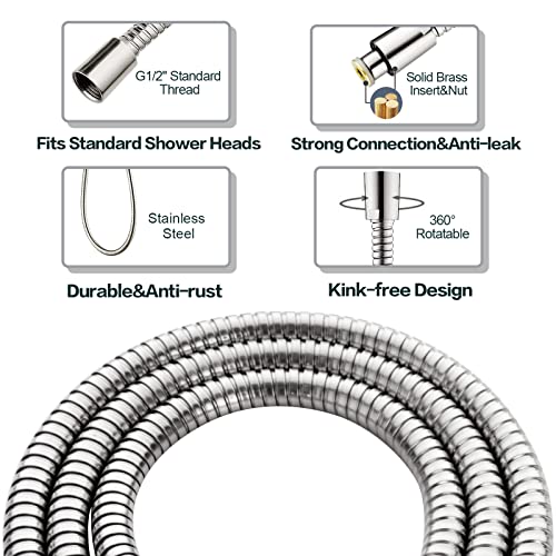 - خرطوم دش متين ومرن من الستانلس ستيل بطول 5 أقدام بلمسة نهائية جميلة من النيكل المصقول، صامولة مخروطية مضادة للالتواء متصلة برأس الدش المحمول باليد