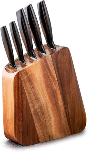 Generic - طقم سكاكين مطبخ مغناطيسية بقاعدة خشبية من برايت ستون - تصميم انيق وعملي