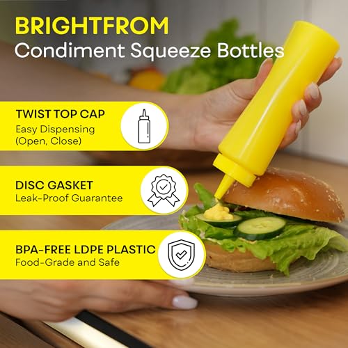 BRIGHTFROM - زجاجة صوص فارغة قابلة للضغط وبعنق بفتحة واسعة وسعة 227 ملليلتر ومصنوعة بلاستيك خالٍ من البيسفينول أ، رائعة للكاتشب والخردل والشربات والصوص والتتبيلات والزيت من برايت فروم، قطعتان