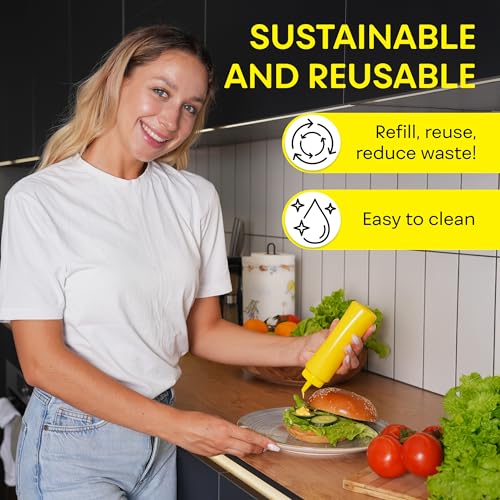 - يمكن استخدام زجاجات الصوص هذه للشربات والكاتشب والخردل والصلصات والصوص. كما يمكن استخدامها للطلاء والصمغ والعديد من السوائل الأخرى سواء في المطبخ والفنون والحرف اليدوية.