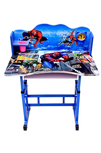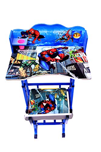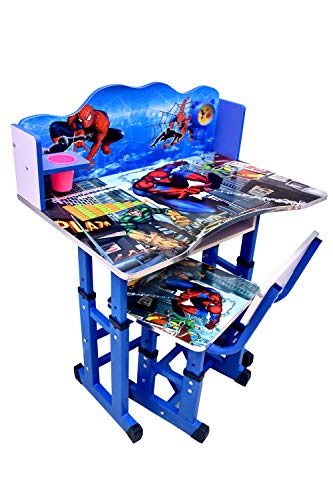BRIJBAZAAR - طقم طاولة دراسة قياسية وكرسي للأطفال بطباعة كرتونية وارتفاع قابل للتعديل من بريجيبازار (خشبية)، أزرق