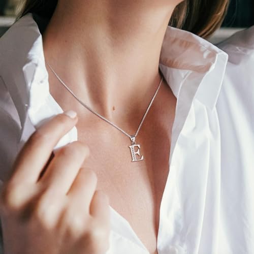 BriLove - بري لوف قلادة للنساء من الفضة الاسترليني عيار 925 مرصعة بحجر زركونيا مكعب 26 حرف ابجدي بدلاية مخصصة بالزركونيا المكعبة