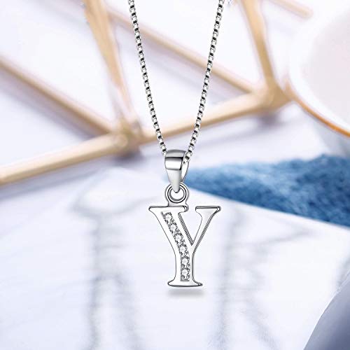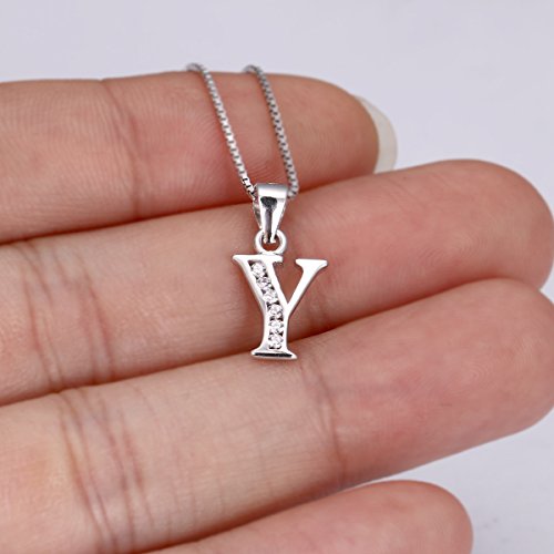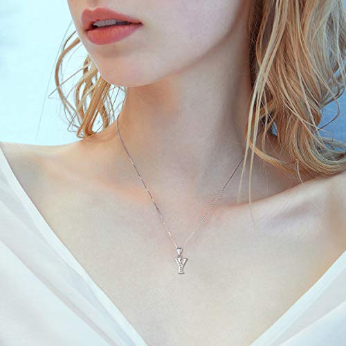 BriLove - بري لوف عقد للنساء من فضة ستيرلينج عيار 925 مرصع بحجر زركونيا مكعب ودلاية مكونة 26 حرف ابجدي.