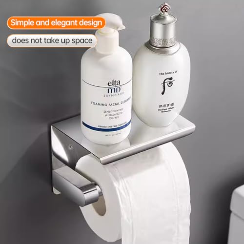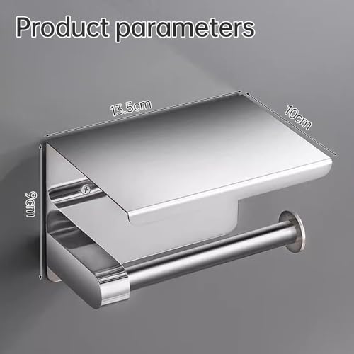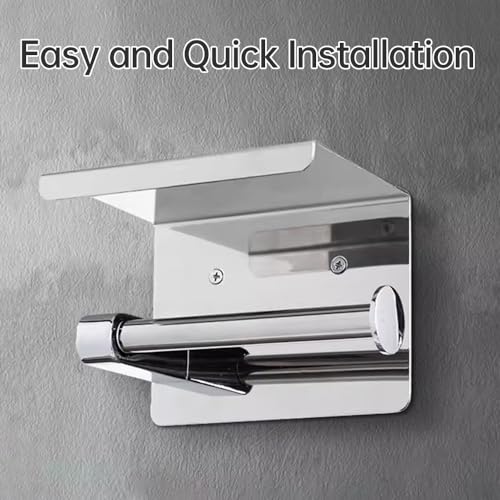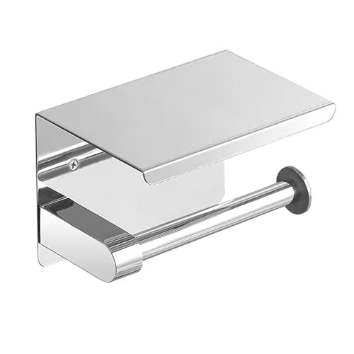 BRIMIX - حامل ورق التواليت مع رف حامل مناديل التواليت من الفولاذ المقاوم للصدأ مع تخزين للموبايل يثبت على الحائط للحمام من بريمكس (لون كروم)