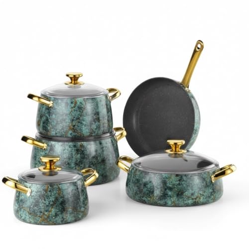 - متانة الجرانيت: مصنوعة من الجرانيت الصلب، توفر هذه المجموعة سطحًا قويًا غير لاصق للطهي اليومي.