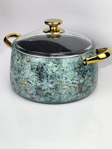 Brioni - أواني طهي جرانيت فلورا من بريوني، 9 قطع: تتضمن أواني مقاس 20 سم و22 سم و24 سم و28 سم + مقلاة مقاس 28 سم