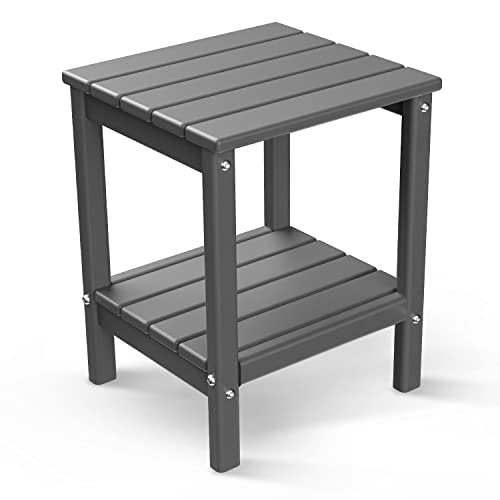 BRIOPAWS - طاولة جانبية على طراز ادروندك، مقاومة للعوامل الجوية بلاستيكية بطابقين للاستخدام الداخلي والخارجي وغرفة المعيشة والفناء الخلفي أو حول نار المخيم من بريوباوس، بحجم 35.56 × 33.02 سم، بلون رمادي