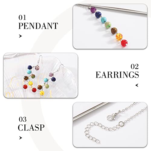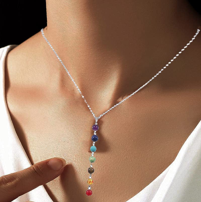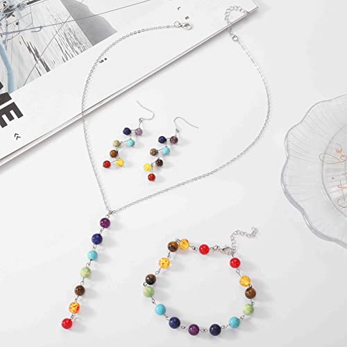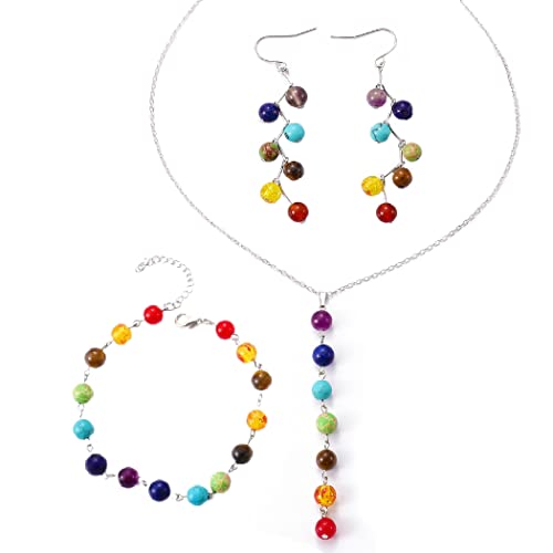 Brishow - بريشاو طقم عقد شاكرا طبيعي مكون من 7 قطع وسوار واقراط وخرز الاحجار الكريمة للنساء والفتيات مقاس واحد معدن حجر أرجواني