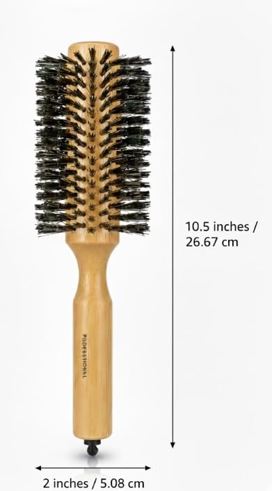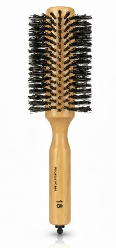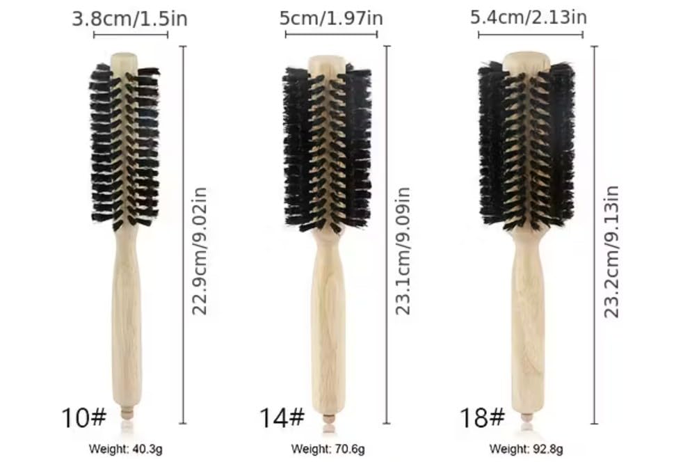 Generic - فرشاة شعر دائرية بشعيرات ومقبض خشبي ومشط تجعيد لتجفيف الشعر، فرشاة شعر مضادة للكهرباء الساكنة لفرد وتجعيد وزيادة كثافة وفك تشابك الشعر، قطعة واحدة مقاس 18