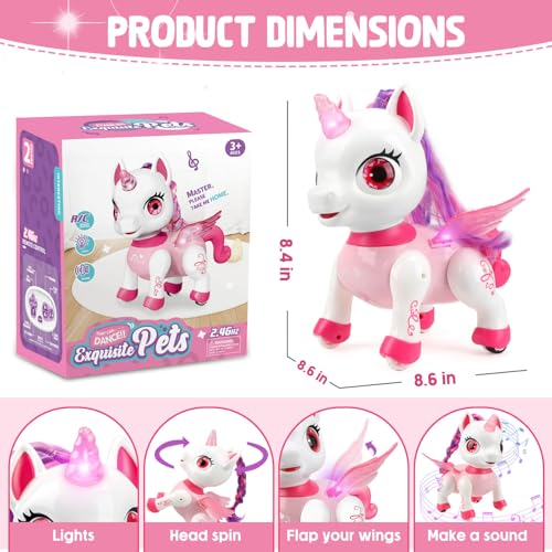 Britik - ألعاب يونيكورن للبنات من سن 4-6 سنوات من بريتيك: لعبة حيوانات أليفة روبوت للأطفال بجهاز تحكم للأعمار من 5-7 سنوات، لعبة روبوت ذكية للبنات بعمر 4-5 سنوات، لعبة روبوت للأطفال من 8 -12 سنة، هدايا عيد