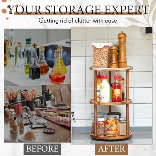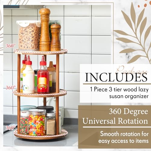 Briwooody - منظم ليزي سوزان من خشب الأكاسيا، رف توابل دوار 360 درجة، منظم مطبخ من ثلاث طبقات للخزانة وطاولة المؤن من بريوودي، 25.4 سم
