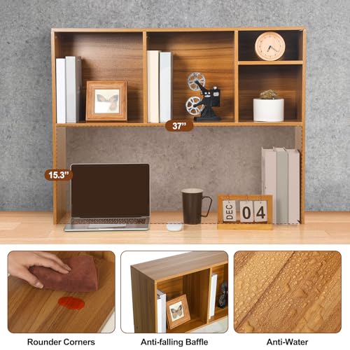 Briwooody - رف كتب من الخشب بتصميم علوي من 5 أرفف بارتفاع 3 مستويات لتنظيم المكتب للجامعات والمكاتب والمنازل من بريوودي، 94 × 24 × 73 سم، بني