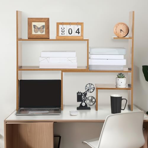 - سهلة التجميع: هل تريد إنشاء سطح مكتب أنيق بسهولة؟ يأتي رف المكتب الخشبي هذا مع براغي، مما يجعله مريحًا لك لتثبيته بنفسك. يوصى باستخدام مثقاب لاسلكي لتركيب أسهل وأكثر كفاءة
