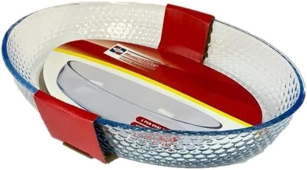 Home Maker - صينية فرن بيضاوية من الزجاج بنمط قرص العسل هوم ميكر سعة 3.20 لتر شفاف