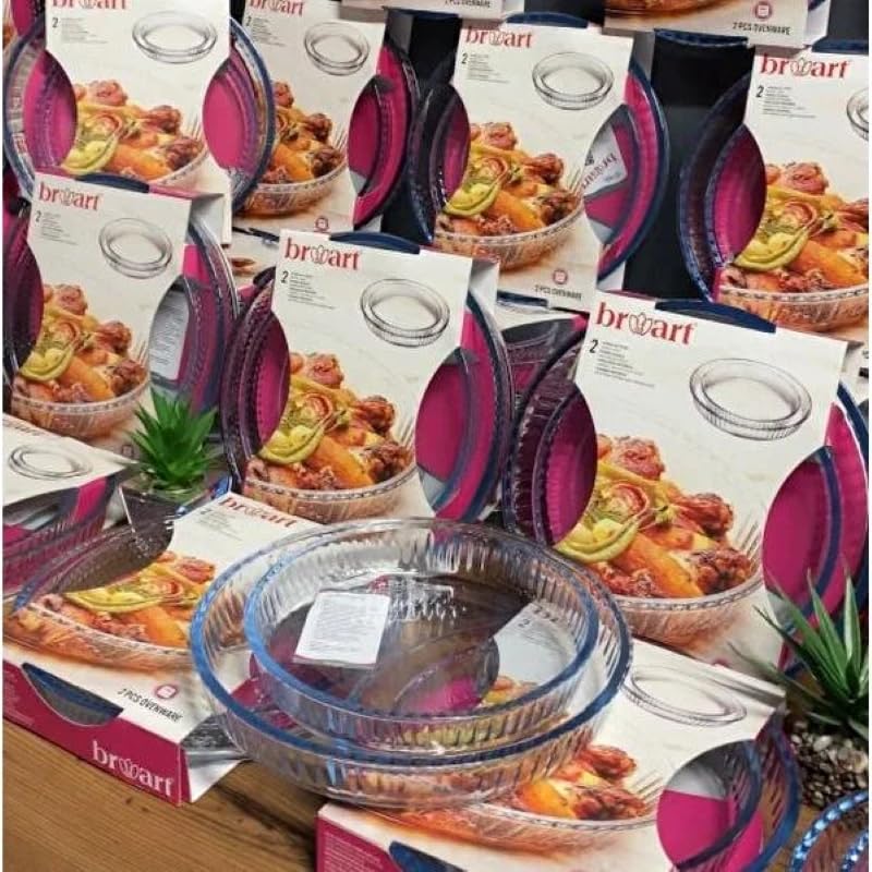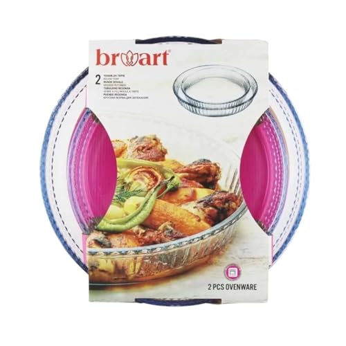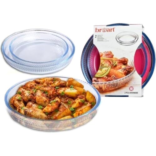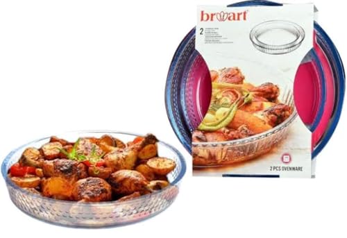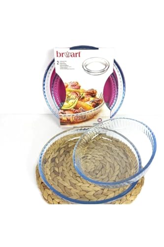 BRART - صينية فرن زجاجية دائرية سادة من برو ارت، تصميم أنيق من علامة تجارية موثوقة بشكل جذاب، 2 قطعة