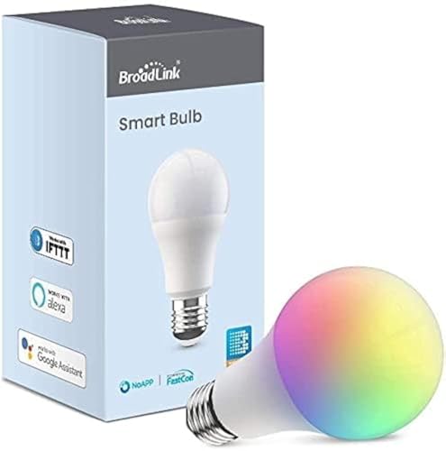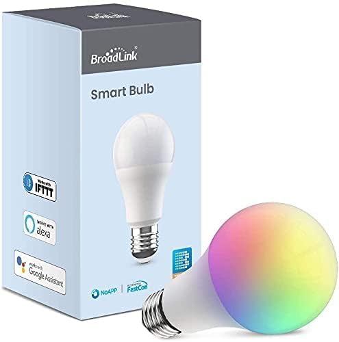 Broadlink - لمبة ذكية LED 10 واط 800 لومن باضاءة ار جي بي، تتصل عبر واي فاي وقابلة للتخفيت، اي 27 بقاعدة ايه 60، تعمل مع اليكسا وجوجل هوم وسيري اف تي لا تحتاج الى محور، تاتي بالوان متعددة من برودلينك