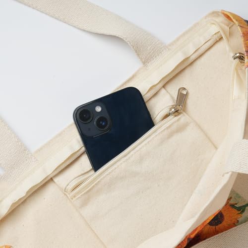 BROADREAM - بروددريم شنطة يد من قماش الجوت بتصميم فينتاج من جوتيبوتل، شنطة يد من قماش الجوت، شنطة يد كبيرة توت من القماش بتصميم جمالي فينتاج للنساء من يوني اربيت، نمط عباد الشمس، مقاس XL، فان جوخ