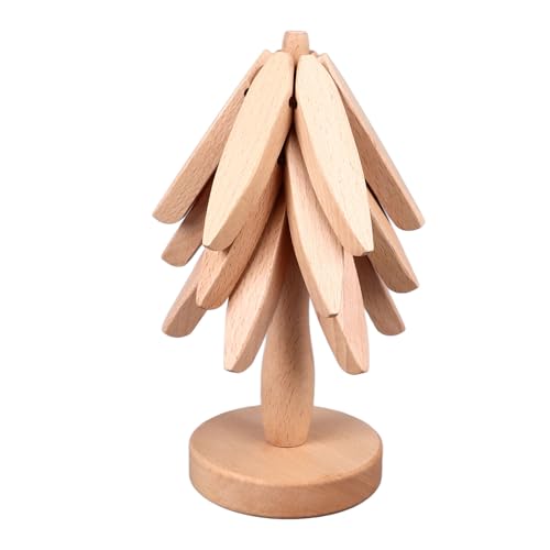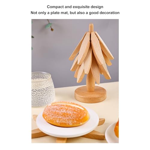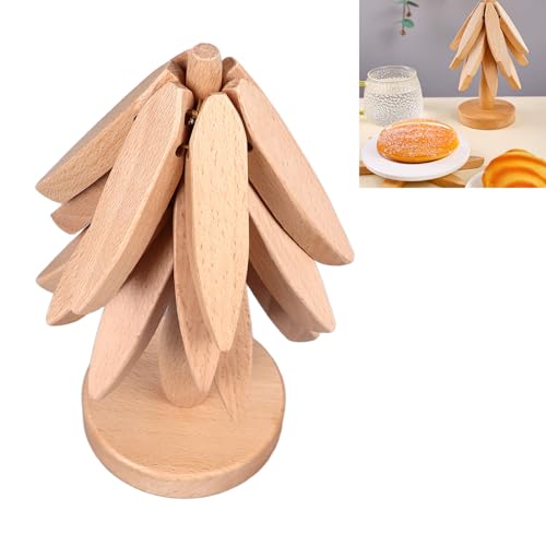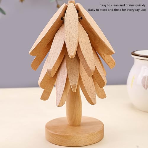 BROLEO - مجموعة حوامل خشبية للأطباق الساخنة من بروليو، 3 قطع قابلة للطي على شكل شجرة، قاعدة أكواب من خشب الزان المقاوم للحرارة، وسادة ساخنة للمطبخ لإبريق الشاي والأواني الساخنة وسطح الطاولة