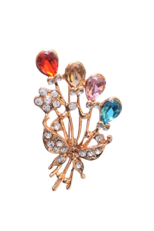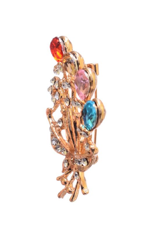 Generic - بروش على شكل وردة مع فصوص - متعدد الالوان 1