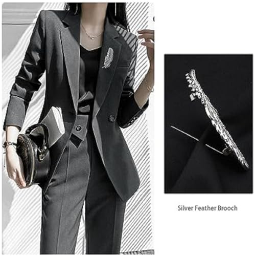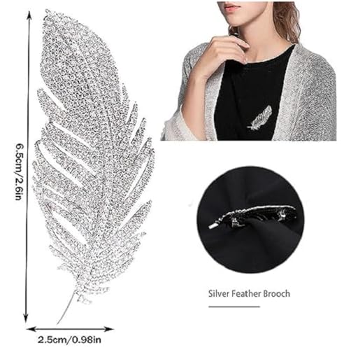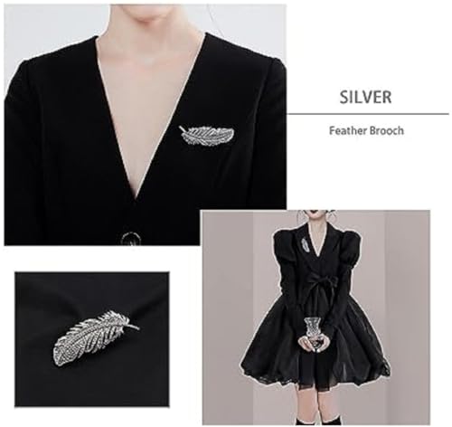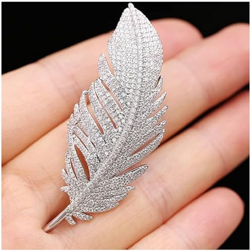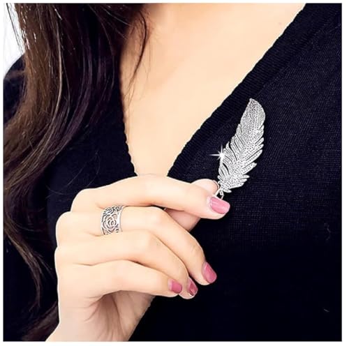 Generic - بروش دبوس نسائي بتصميم ريشة نحاسي مطلي فضة