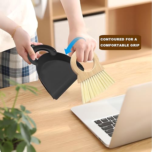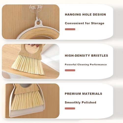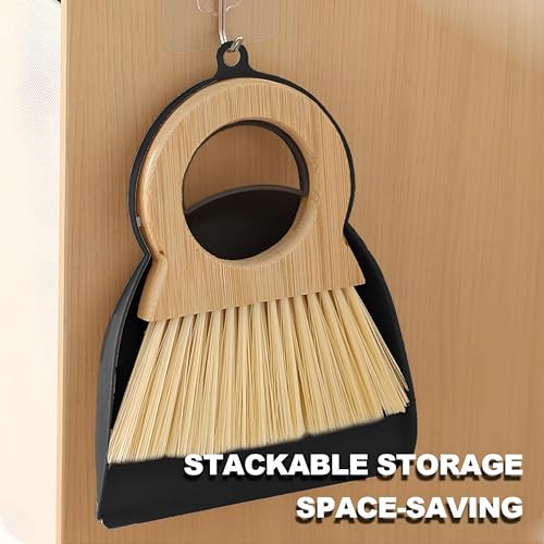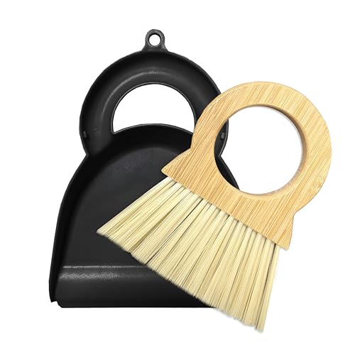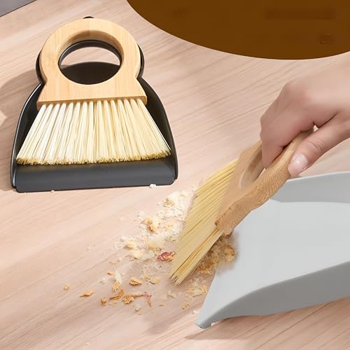 Generic - طقم مكنسة وجاروف يدوية من خشب البامبو الطبيعي بتصميم مدمج وخفيف الوزن للتنظيف السريع في المكتب أو المطبخ أو المنزل، حل صديق للبيئة وموفر للمساحة (موديل 1)