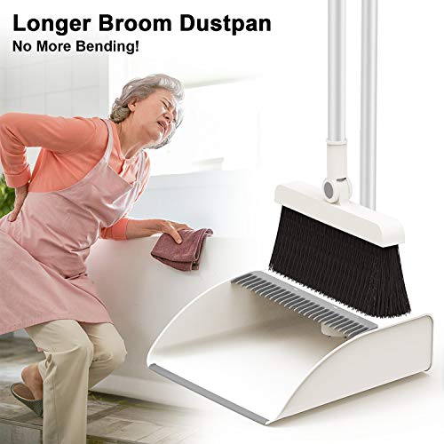 Homga - طقم مقشة وجاروف من هومجا، مجموعة مقشة عمودية بجاروف مزودة بيد طويلة قابلة للتمدد ومناسبة للاستخدام في تنظيف ارضية الردهة والمطبخ والمنزل والغرف والمكتب
