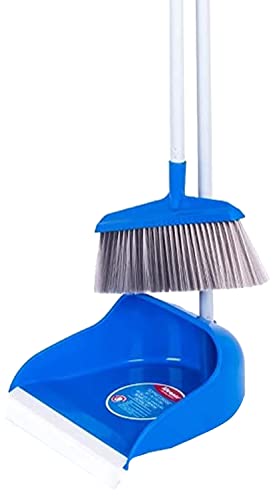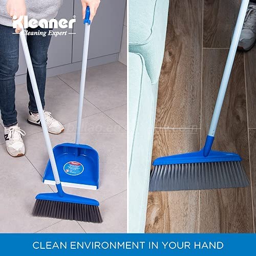 Kleaner - طقم جاروف ومكنسة، مقاس: جاروف من المطاط الحراري بعرض 26 سم وبعمق 25 سم وشعيرات 75 ملم ومقبض معدني 75 سم