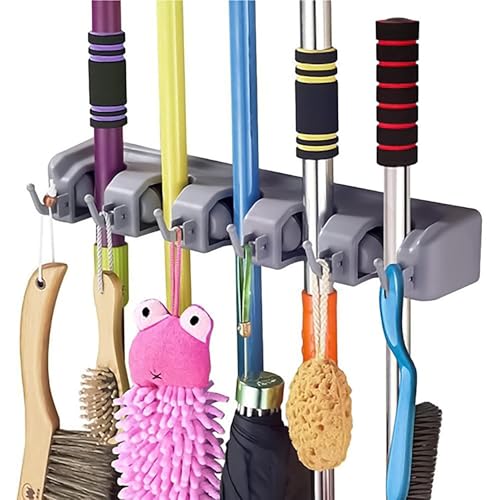AREXOL - حامل مكانس خماسي لتخزين وتنظيم أدوات التنظيف بسعة خمس خانات مع علاقات قوية للفوط والمقشات والمساحات للحمام والمطبخ خامة متينة سهلة التركيب ومقاومة للاستخدام اليومي