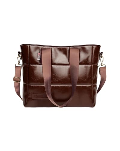 B.S collection - شنطة يد كبيرة توت متعددة الاستخدامات مصنوعة من الجلد المبطن الناعم للبنات من مجموعة بي اس بلون بني