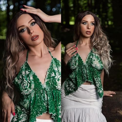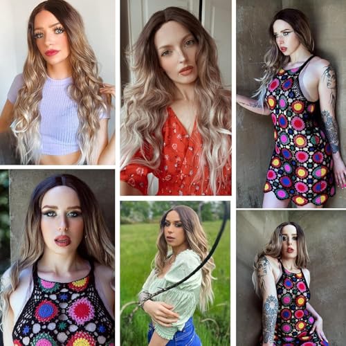 Generic - باروكة شعر بني تسريحة بوب ، باروكات شعر قصير متموج للنساء بجزء في المنتصف، باروكة شعر صناعي مصنوع من الياف مقاومة للحرارة، باروكة مناسبة للارتداء اليومي للتمتع بمظهر طبيعي