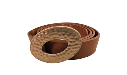 Generic - حزام من الجلد الصناعي بلون بني مع ابزيم دائري بلون ذهبي