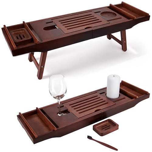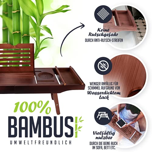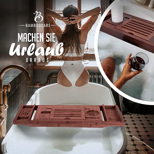 BambooCare - رف حمام من خشب الخيزران باللون البني كملحق حمام مع طبق صابون وحامل تابلت وحامل لاب توب، فكرة هدية مثالية كهدية عيد ميلاد وما الى ذلك.