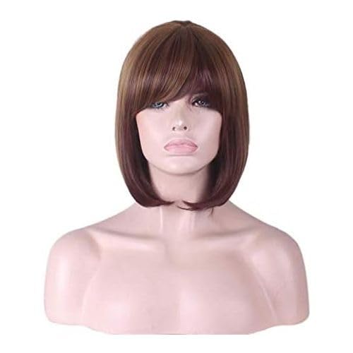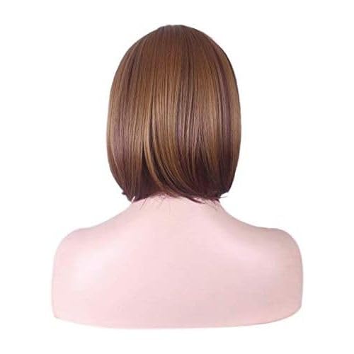 Generic - باروكة شعر صناعي مستقيم قصير لون بني مصنوع من الفايبر الحراري
