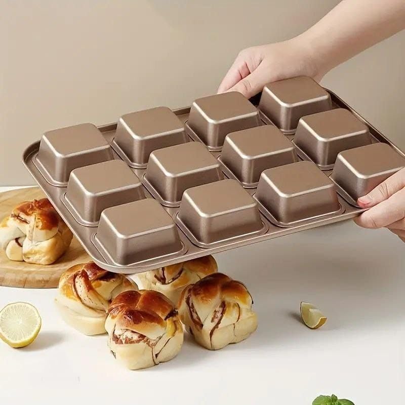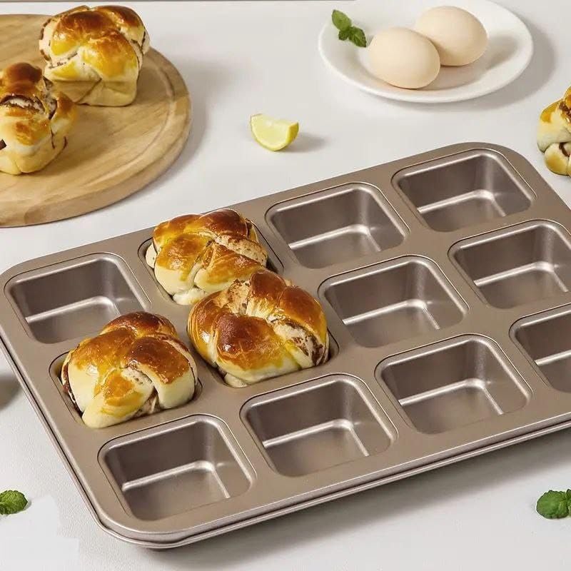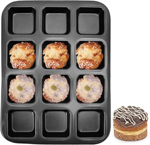 Generic - صينية خبز براونيز من 12 تجويف بتصميم مربع للكيك الصغير بنمط غير لاصق مصنوعة الستيل الكربوني لخبز المافن والكب كيك قالب مقسم للخبز في الفرن اسود صلب كربون