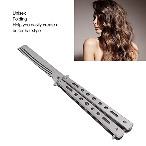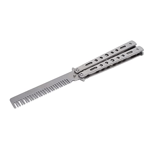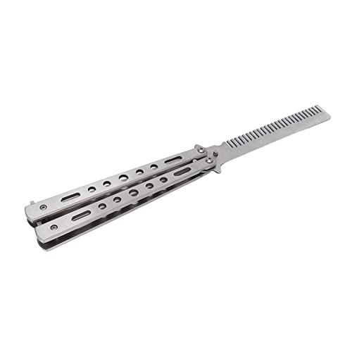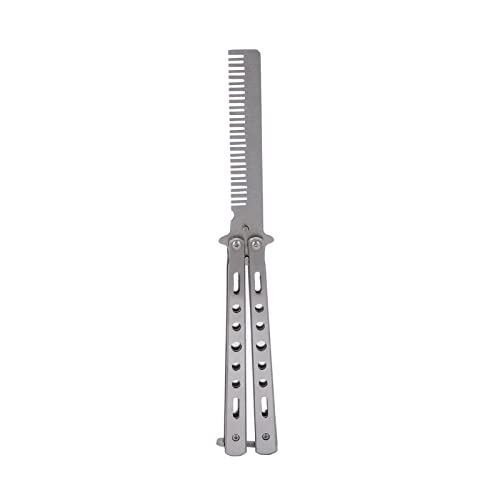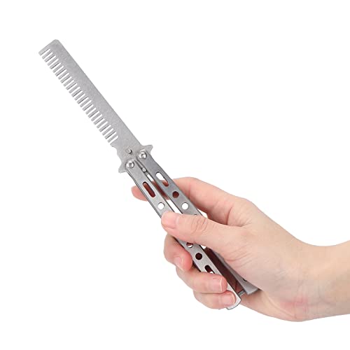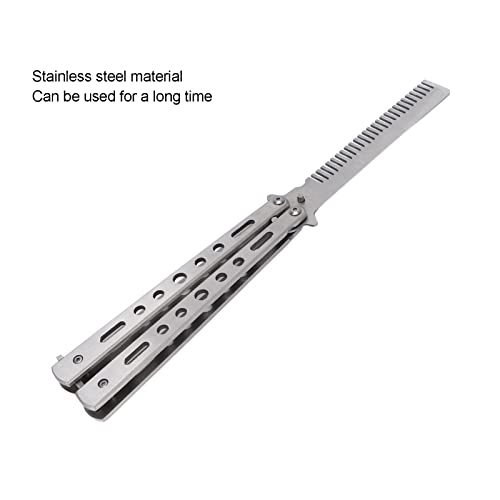 Brrnoo - مشط جيب قابل للطي مصنوع من الفولاذ المقاوم للصدأ، مشط سكين رائع لمصففي الشعر، فرشاة أوتوماتيك ومشط قابل للفتح والإغلاق على شكل فراشة، مشط ممارسة (لون فضي)