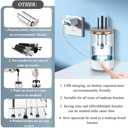 AOUZOVLI - منظف فرش مكياج كهربائي اوتوماتيكي، جهاز تنظيف فرش كهربائي لمعظم الفرش