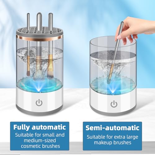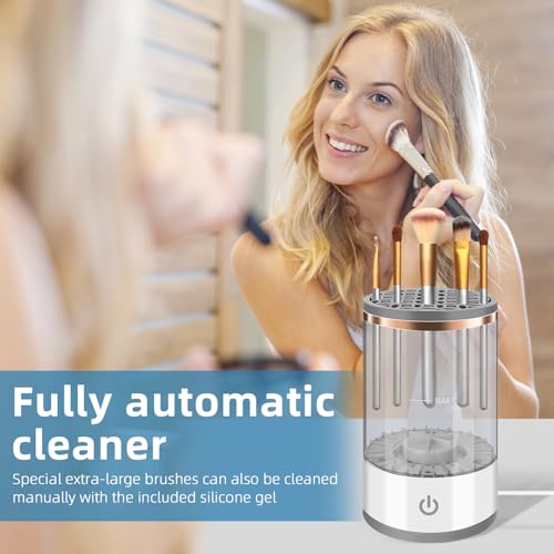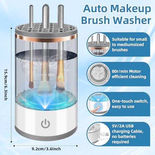 Suprbee - منظف فرش المكياج الكهربائي، مجفف منظف فرش المكياج بمنفذ USB مع وسادات تنظيف سيليكون وأقراص صابون، منظف فرش المكياج لفرش المكياج بجميع الأحجام