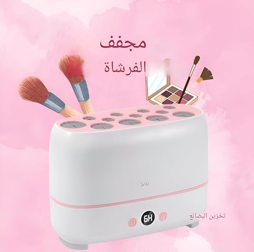Generic - مجفف فرش - حامل كهربائي سريع الجفاف لفرش المكياج، رف امن بـ 12 فتحة، مجفف مستحضرات تجميل يعمل بمنفذ USB، حل تجفيف متعدد الاستخدامات، لمسة نهائية بيضاء وزهرية نظيفة