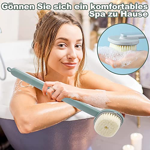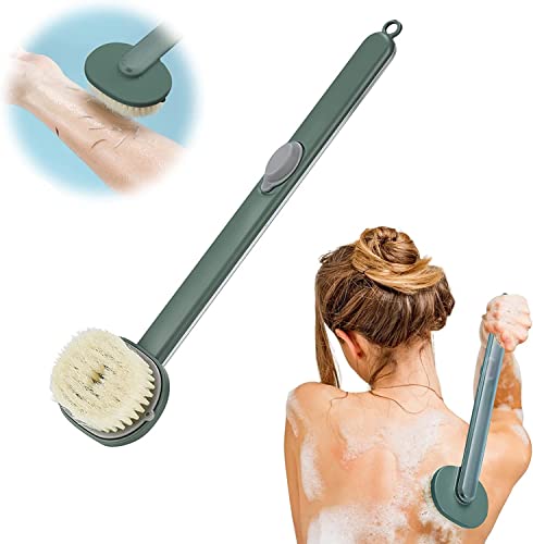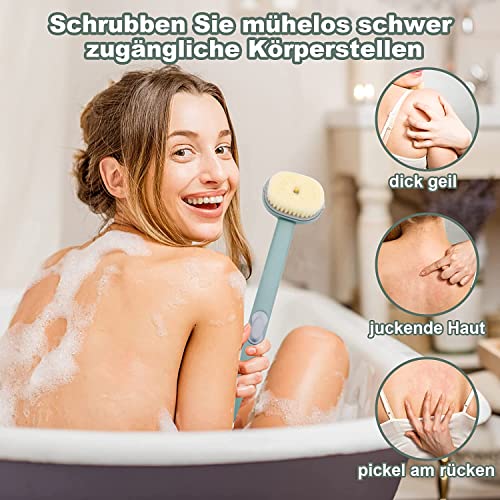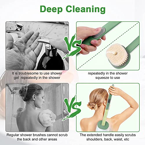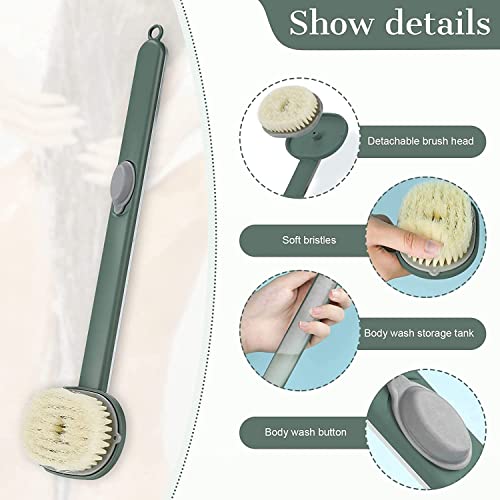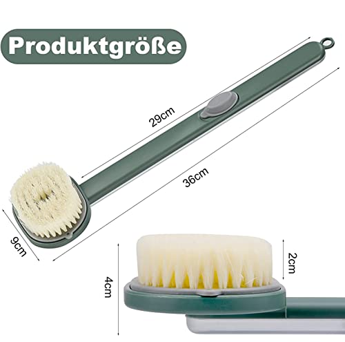 MAKINGTEC - فرشاة بمقبض طويل للاستحمام، فرشاة استحمام قابلة للتخزين بمقبض طويل مع مكان لغسول الجسم، مستلزمات استحمام الأسرة، فرشاة تنظيف ناعمة للاستحمام والتدليك مع موزع صابون للتقشير والتنظيف، لون أخضر