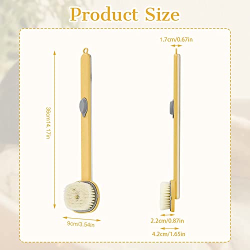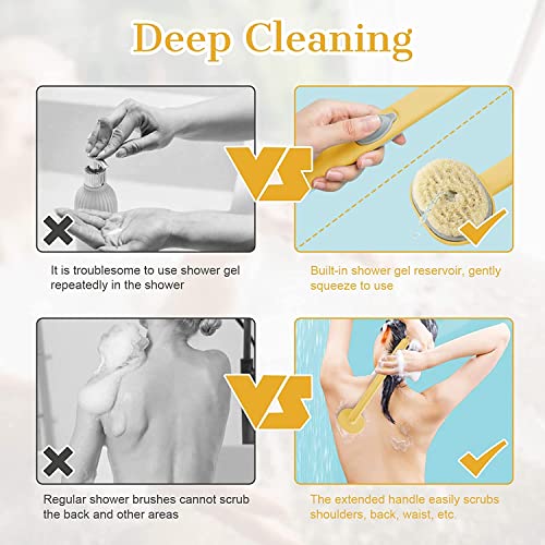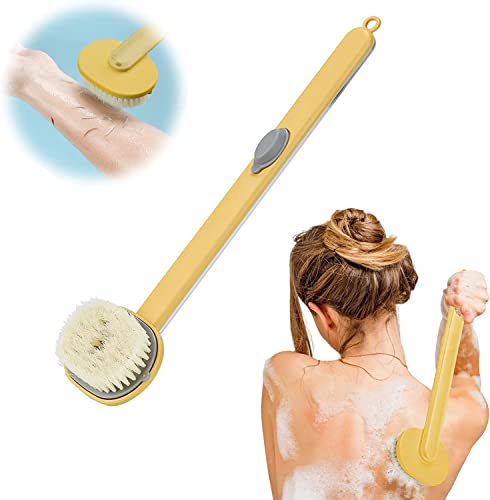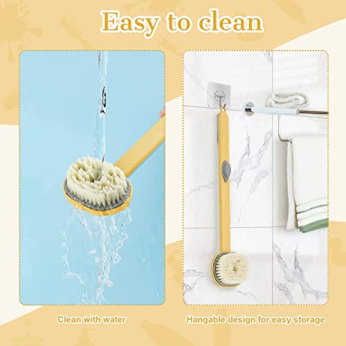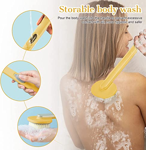 MAKINGTEC - فرشاة بمقبض طويل للاستحمام، فرشاة استحمام قابلة للتخزين بمقبض طويل مع مكان لغسول الجسم، مستلزمات استحمام الأسرة، فرشاة تنظيف ناعمة للاستحمام والتدليك مع موزع صابون للتقشير والتنظيف، لون أصفر