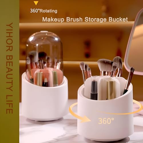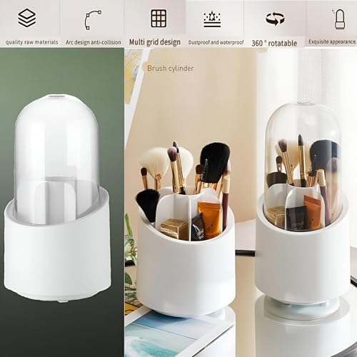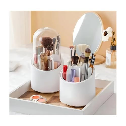 Generic - حل تخزين الفرش - منظم مقاوم للماء يدور 360 درجة مع غطاء، تصميم صغير لفرش المكياج، مثالي لمناطق الزينة والحمام