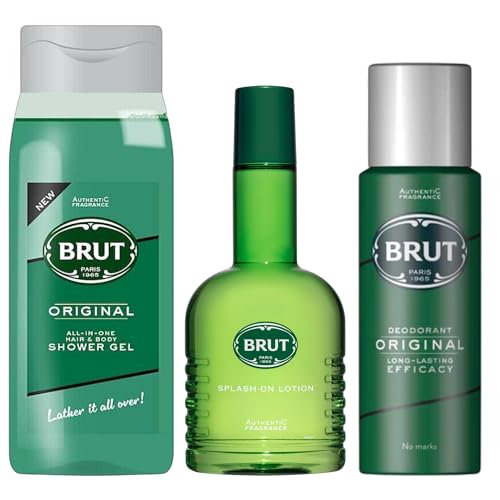 Brut - مجموعة هدايا العناية للرجال | رائحة أصلية | جل استحمام 500 مل، لوشن سبلاش اون 200 مل ومزيل عرق 200 مل | من بروت، مجموعة من 3 قطع