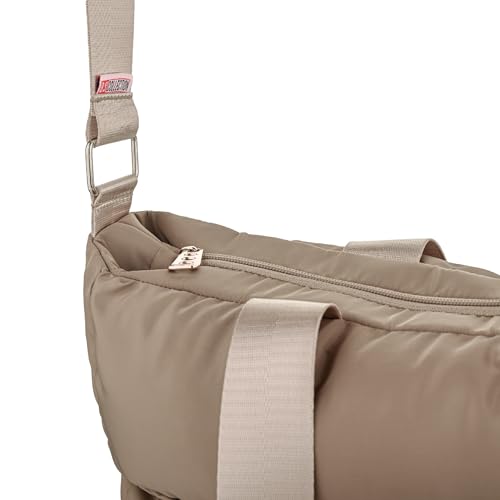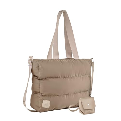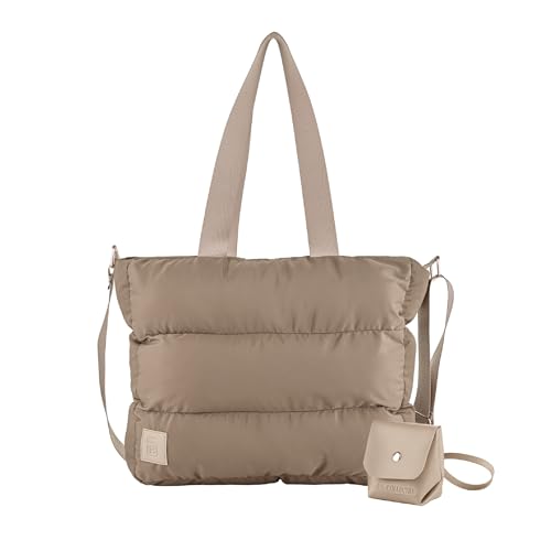B.S collection - شنطة يد - كتف كبيرة مبطنة من القماش الناعم المقاوم للماء للنساء بي اس كوليكشن ، لون كافيه مقاس M