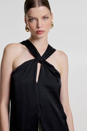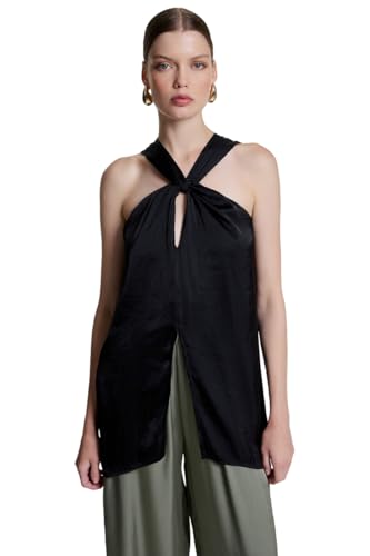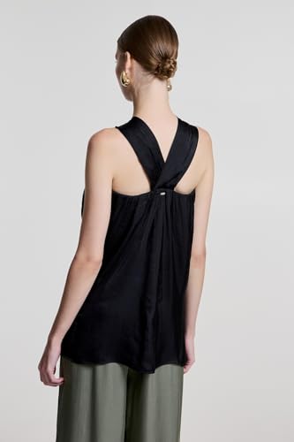 BSB - بي اس بي بلوزة متقاطعة بدون اكمام للنساء، مقاس 42، لون اسود