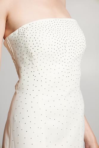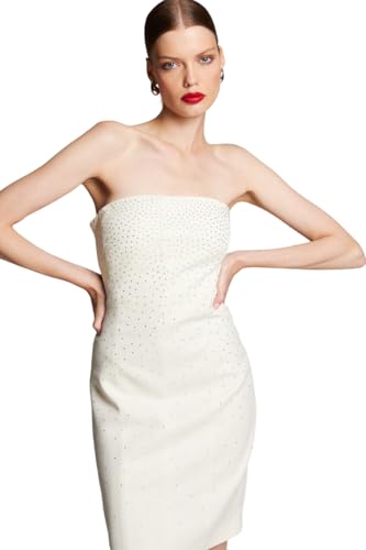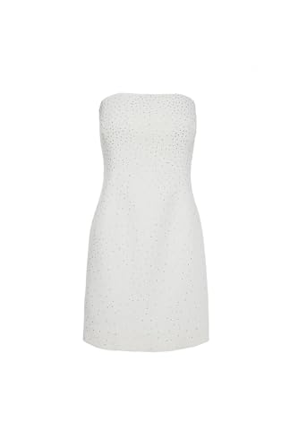 BSB - بي اس بي فستان للنساء مرصع باحجار الراين، لون ابيض، مقاس 38