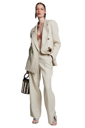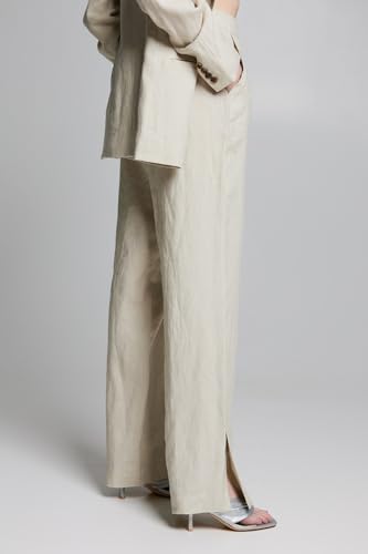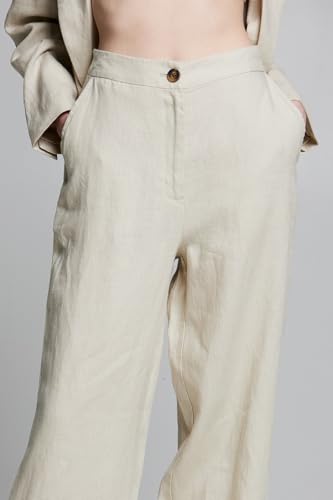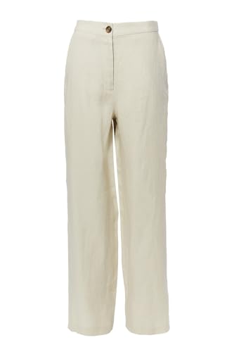 BSB - بي اس بي بنطلون كتان بخصر مرتفع للنساء، مقاس 38، لون بيج