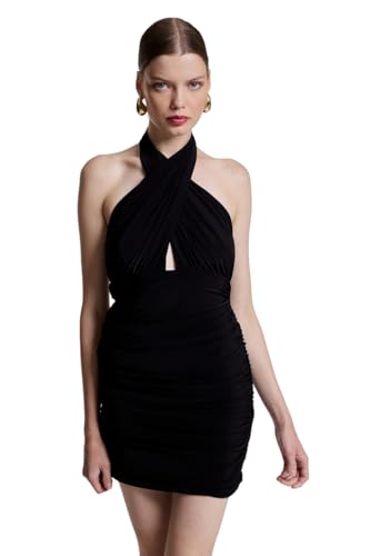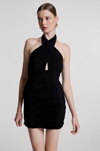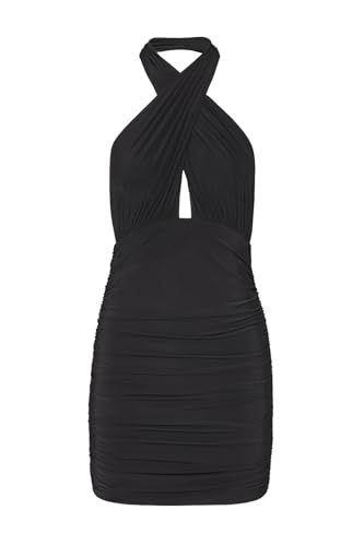 BSB - بي اس بي فستان قصير مكشكش للنساء، مقاس M، لون اسود