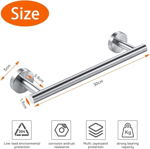 BSJIASHIWEI - حامل فوط مقاس 30 سم بلمسة نهائية مصقولة، مناسب للحمامات والأطباق والملابس، مصنوع من الفولاذ المقاوم للصدأ 304 ويثبت على الجدار من BSJIASHIWEI، فضي